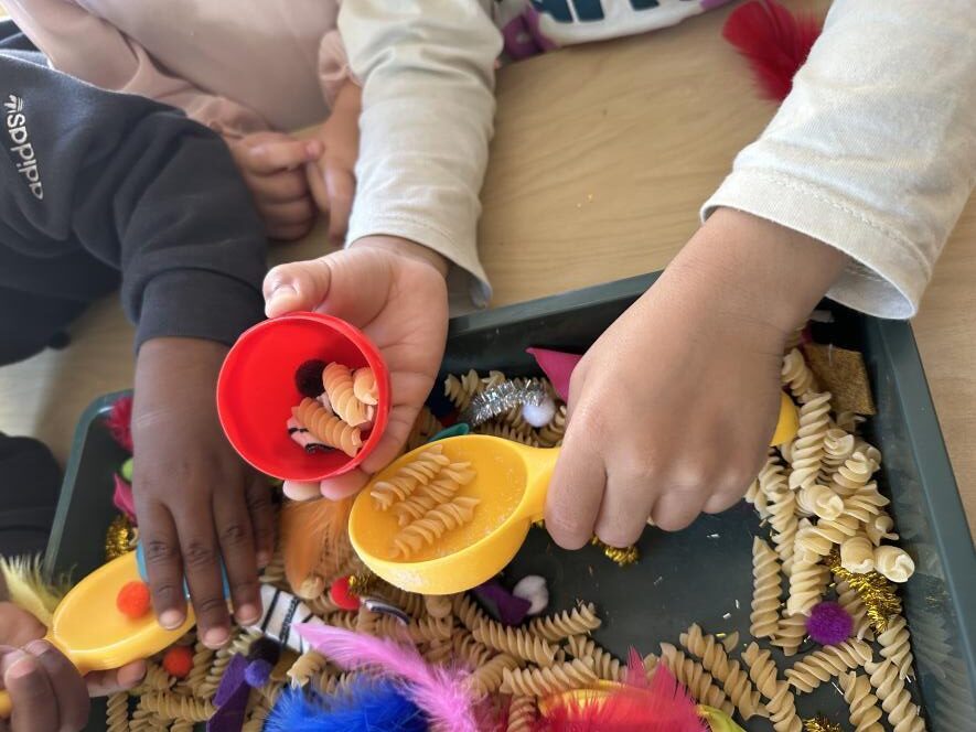 Wanneer kinderen met hun handen verschillende materialen verkennen, zoals macaroni, maïskorrels en magisch zand, oefenen ze hun fijne motoriek. Het voelen, oppakken en knijpen in kleine voorwerpen helpt om de spieren in hun handen en vingers te versterken, wat belangrijk is voor latere vaardigheden zoals schrijven en knippen.