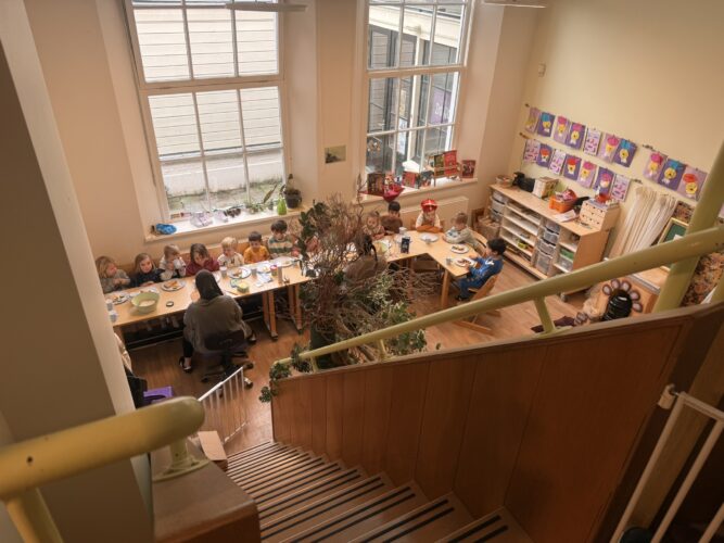 Ook onze omgeving draagt bij aan een fijne dag. De lichte, ruime binnenruimtes met hoge plafonds en veel daglicht geven een buitengevoel: het is helder, luchtig en inspirerend om in te spelen, ontdekken en leren. En dat buitenspelen wordt straks helemaal geweldig, want onze buitenruimte wordt binnenkort vernieuwd. Er komt nog meer ruimte om te rennen, klimmen, onderzoeken en fantaseren. Bekijk de foto’s hieronder voor een impressies hoe deze buitenruimte eruit komt te zien!