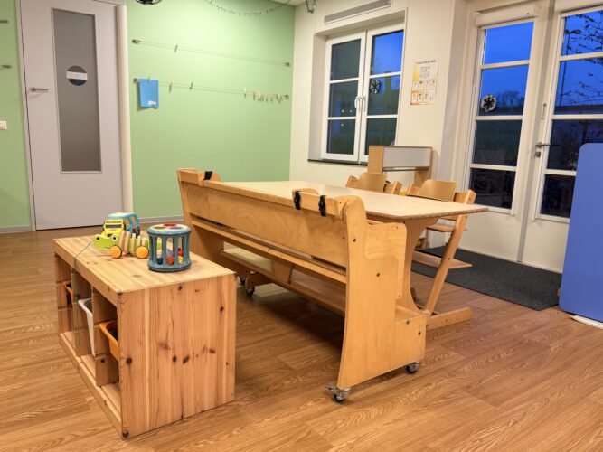 Aan de voorkant is er volop de ruimte om te fietsen op het speciaal aangelegde verkeersplein, waar je zelfs je driewieler even kunt bijtanken als dat nodig is. De prachtige, groene buitenspeelruimte aan de achterkant is een heus speelparadijs en staat garant voor heel wat water-, zand- en modderplezier!
