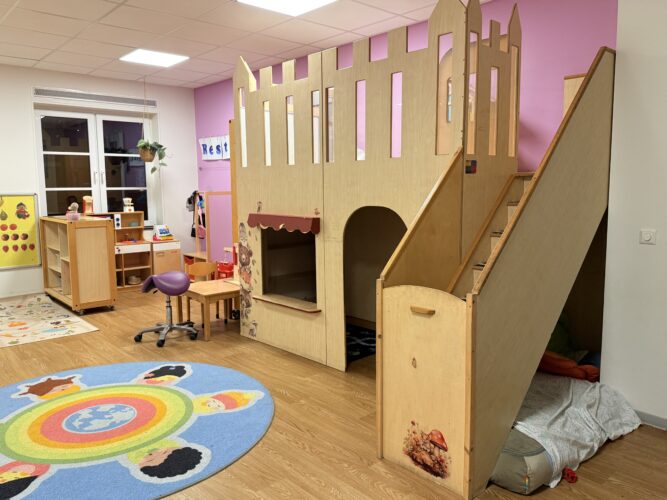 Kinderdagverblijf Dak Kosmos in Laakkwartier/Spoorwijk in Den Haag is ingericht met diverse speelhoeken, waarin de kinderen uitgedaagd worden om op ontdekking te gaan.